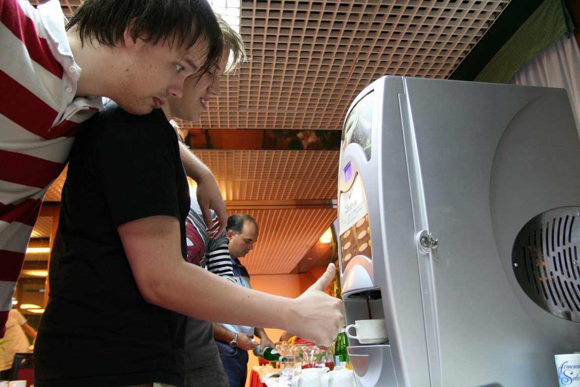 Martin har kommit på hur man fyller på med varmchoklad efter en vecka i Italien, inte illa. Oscar försöker lära sig.