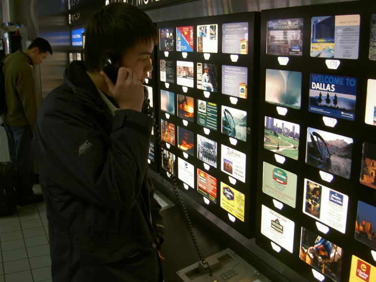 Tomas beställer en Shuttle så vi kunde ta oss till hotellet, vilket senare visade sig vara fel hotell, dock med samma namn.