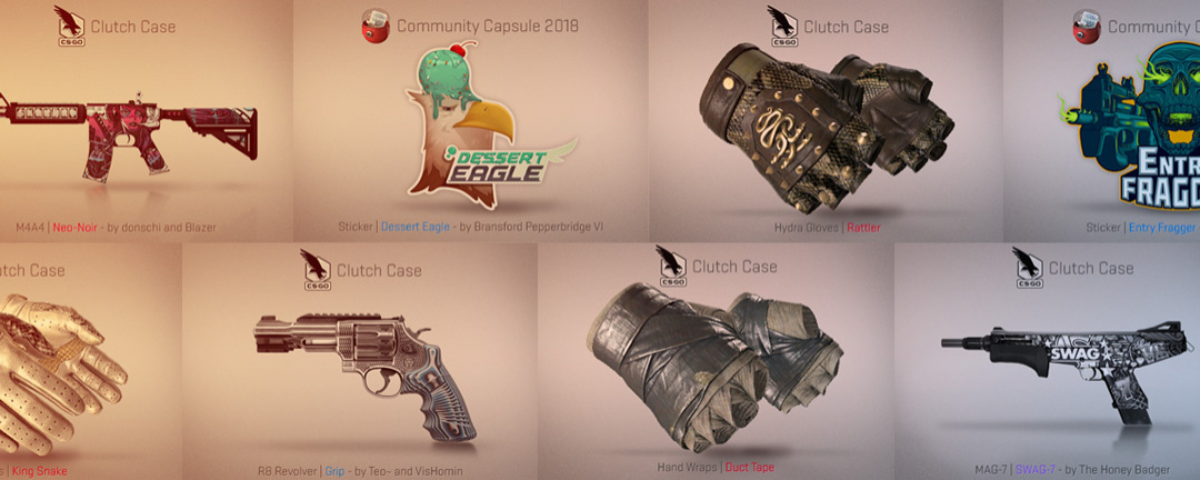 – Introducing the Clutch Case, featuring 17 community-designed weapon finishes and 24 new glove finishes.