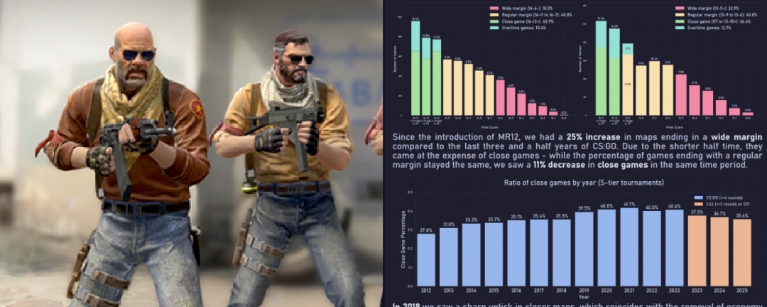 En ny analys visar att matcher i Counter-Strike 2 blivit mer ojämna sedan spelet övergick till MR12-formatet. I tråden "is MR12 too lopsided?" jämför Reddit-användaren btrams data från den nya versionen av spelet med statistik från de senaste tre och ett halvt åren i CS:GO.
