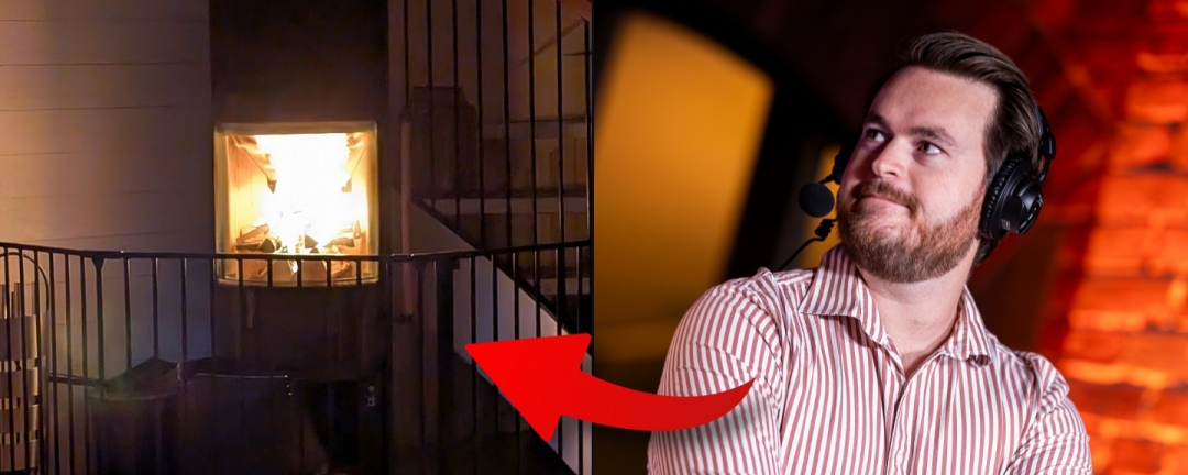 "Den här stormen är helt galen," skriver han. "Strömen har varit borta sedan igår kväll och det var 15 grader inne när jag vaknade. Den här eldstaden är den bästa investeringen jag någonsin har gjort."
