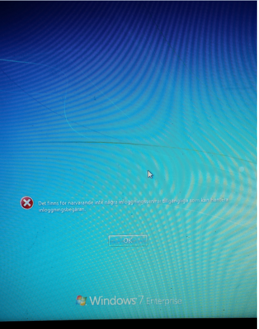 Hej, jag försöker att logga in på min laptop, men när jag gör det kommer det upp ett meddelande som lyder " Det finns för närvarande inte några inloggningsservrar tillgängliga som kan hantera inloggningsbegäran"