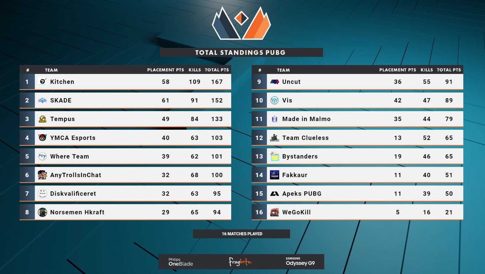 – The only teams I am worried about is the ones that know they are safe (Kitchen, SKADE and Tempus). They play without any fear or worries so they will play much better than 70% of the other teams that have to worry about getting points. Pressure is a hell of a thing!